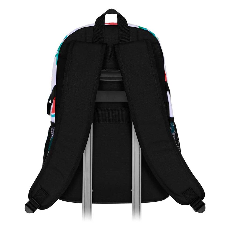 Size: 44x31x18cm. Lightweight urban backpack with one compartment. Adjustable padded shoulder straps and trolley adaptable back strap, Two front pockets and two side mesh pockets. Lined interior and padded pocket for electronic devices.