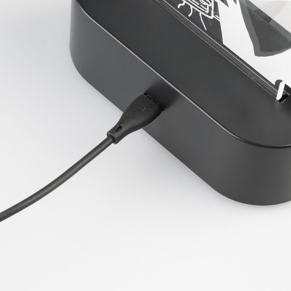 Size: 12x22x5,3cm. Includes different lighting modes. Control button located on the top of the base. Made of ABS and methacrylate. It works with 3 AAA batteries or a USB cable type C.