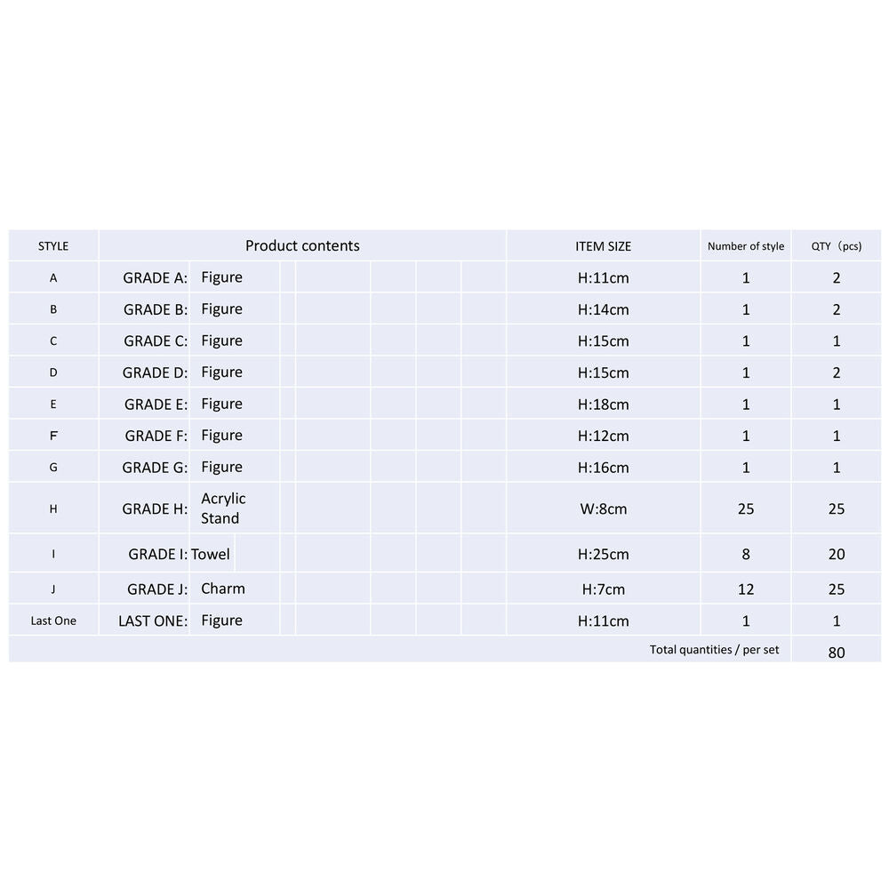 Japanese lottery with My Hero Academia products. It contains 80 products and the corresponding 80 surprise tickets to exchange them for the prizes obtained. In addition, the last ticket has an extra prize added to the prize of the letter that comes out. This means that when there are only a few tickets left, your customers will buy all the remaining tickets in order to win the special prize. This figure cannot be obtained in any other way.
