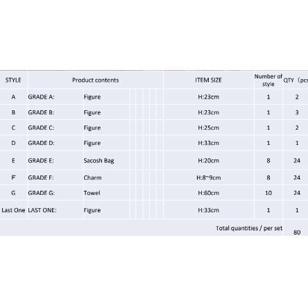 Japanese lottery with My Hero Academia products. It contains 80 products and the corresponding 80 surprise tickets to exchange them for the prizes obtained.
