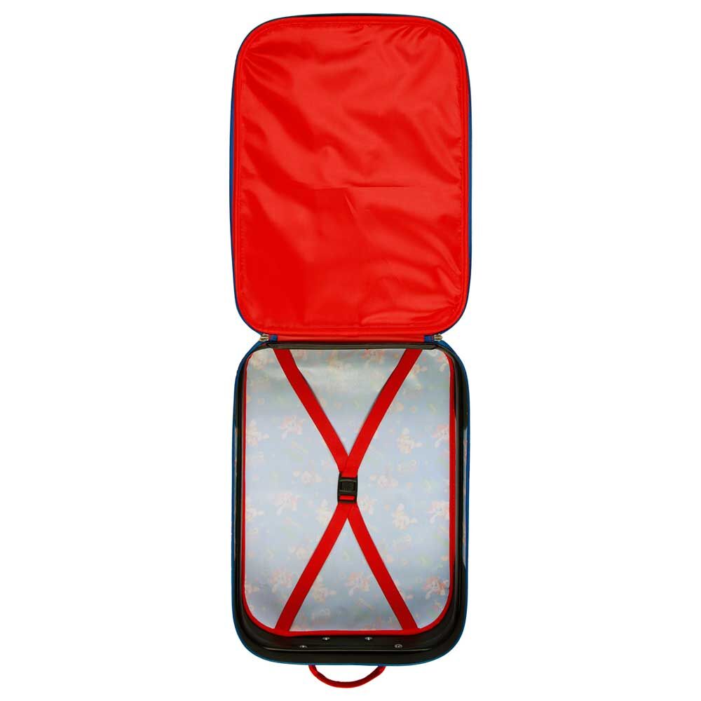 Size: 52x33x17cm. Soft childrens suitcase with embossed front. 2 wheels for easy movementSize valid for hand luggage. Adjustable handle.