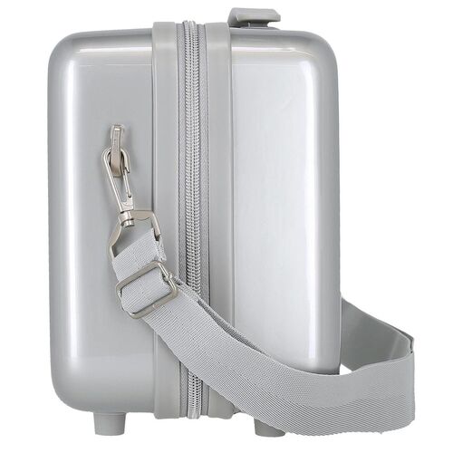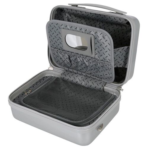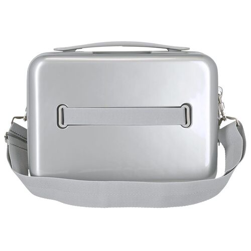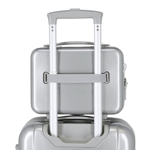 Size: 29x21x15cm. Made of ABS. Contains two compartments, a zipped pocket and a pocket with elastic band for better organisation. Possibility of carrying it with the shoulder strap or adapting it to the suitcase with the back strap to save space. Zip pullers with padlock holes.