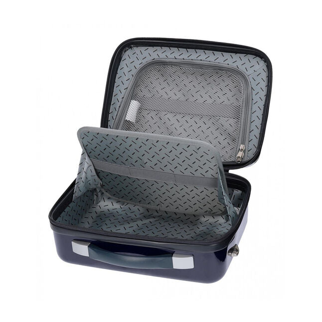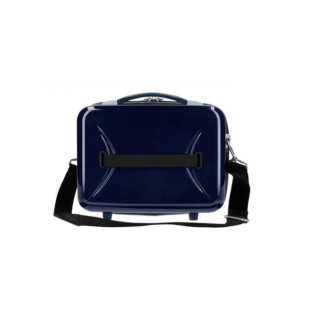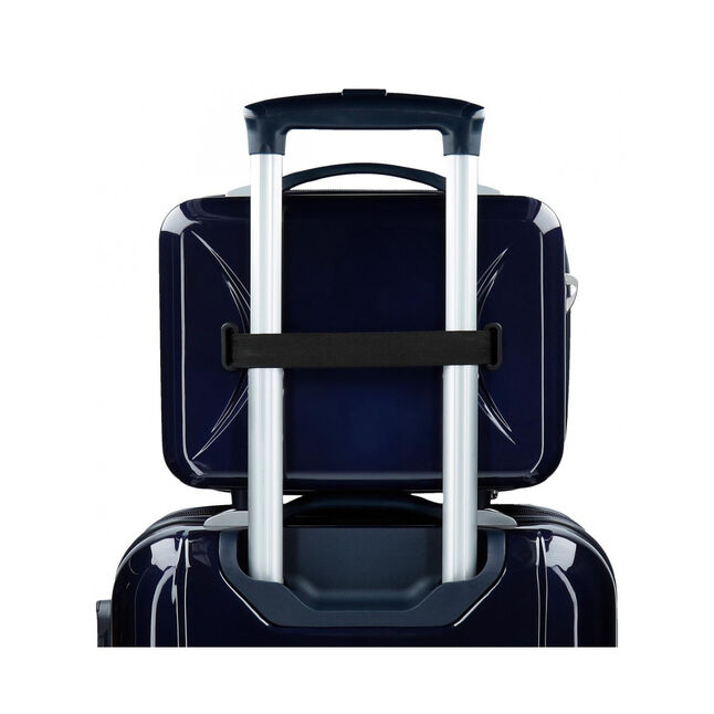 Size: 29x21x15cm. Made of ABS, a light and resistant material. Contains two compartments, a mirror and a pocket to improve organisation. Back strap to adapt the toiletry bag to the trolley or to carry it attached to the suitcase.multiple ways to carry it: on the shoulder with the adjustable shoulder strap or adapted to the trolley with the back strap.