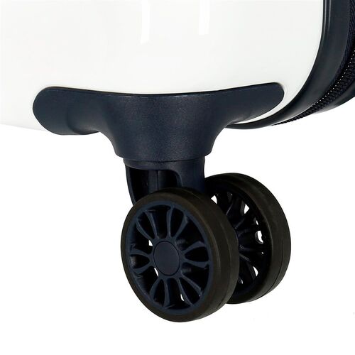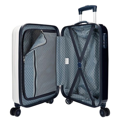 Size: 38x55x20cm (wheels and handle included). It has a capacity of 35L and weighs 2.5 kg. Made of ABS, a resistant and lightweight material. One zipped compartment with a pocket on one side and elastic bands on the other side. Four multi-directional swivel dual wheels for comfortable rolling, smooth rolling and effortless manoeuvrability. Side combination lock to travel securely and protect your personal belongings.