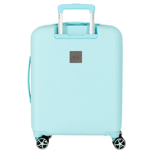 Size: 38x55x20cm (wheels and handle included). It has a capacity of 35L and weighs 2.5 kg. Made of ABS, a resistant and lightweight material. One zipped compartment with a pocket on one side and elastic bands on the other side. Four multi-directional swivel dual wheels for comfortable rolling, smooth rolling and effortless manoeuvrability. Side combination lock to travel securely and protect your personal belongings.