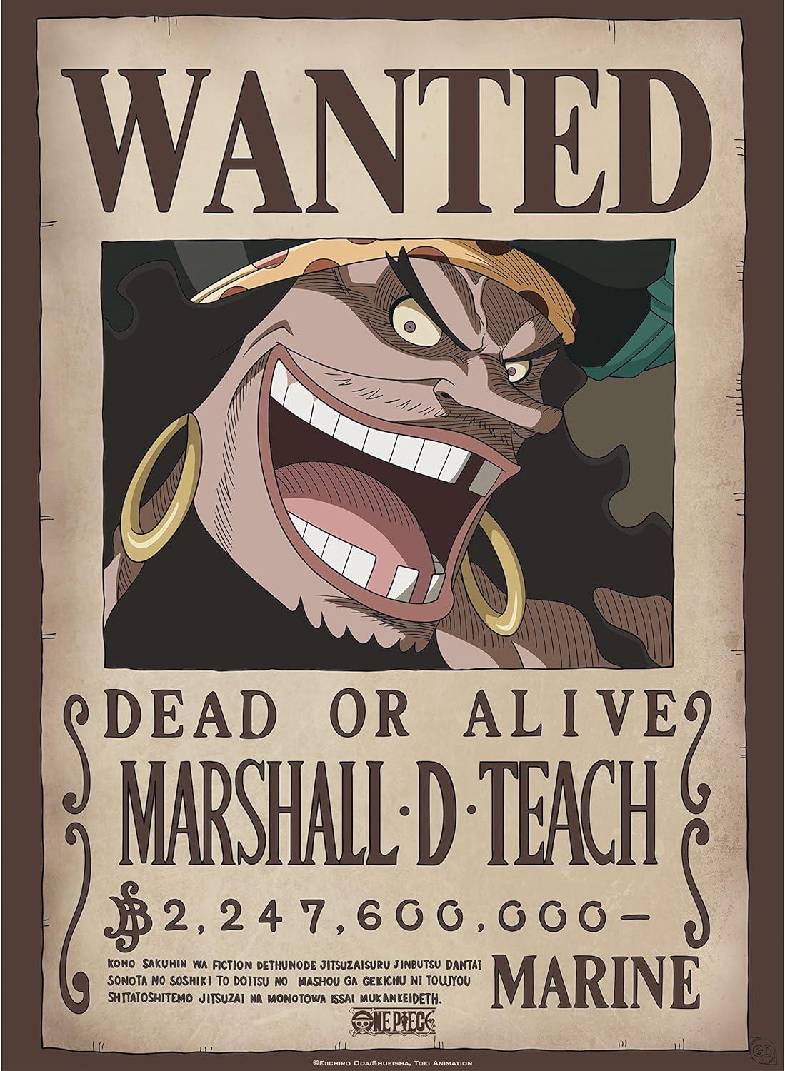 Immergiti nel mondo avventuroso di One Piece con il Poster Ricercato "Wanted Blackbeard" di AbyStyle. Questo poster è dedicato a uno dei personaggi più controversi e temibili dell'universo di One Piece, Marshall D. Teach, noto anche come "Barbanera".